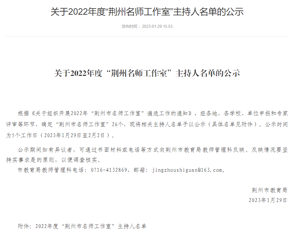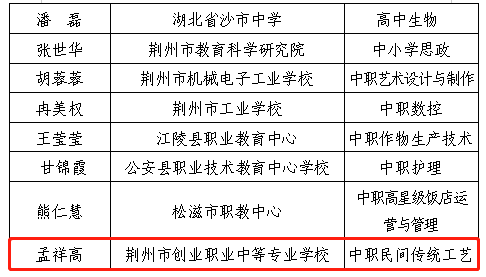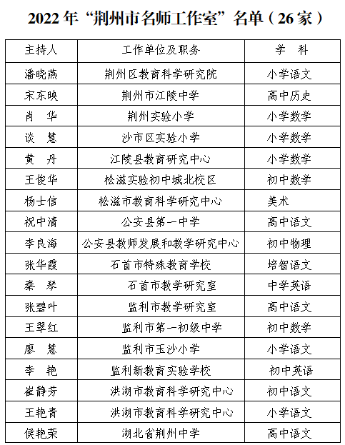 1月29日,市教育局公布了2022年度“荆州市名师工作室”主持人名单,共26人,传承院漆艺老师孟祥高被评为“荆州名师工作室”主持人。